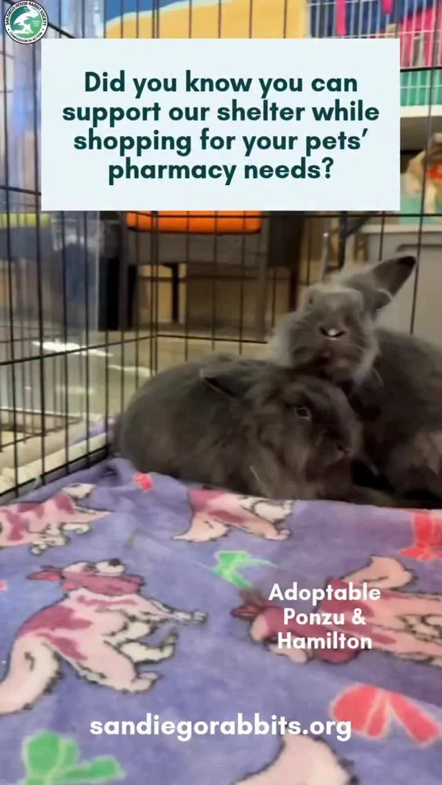 Donations can be made in cash or by credit card at our Bunny Store, 4807 Mercury Street, Suite A, San Diego 92111, on the days we are open for store pick up; Sunday - Saturday, 12 to 5:00 p.m.