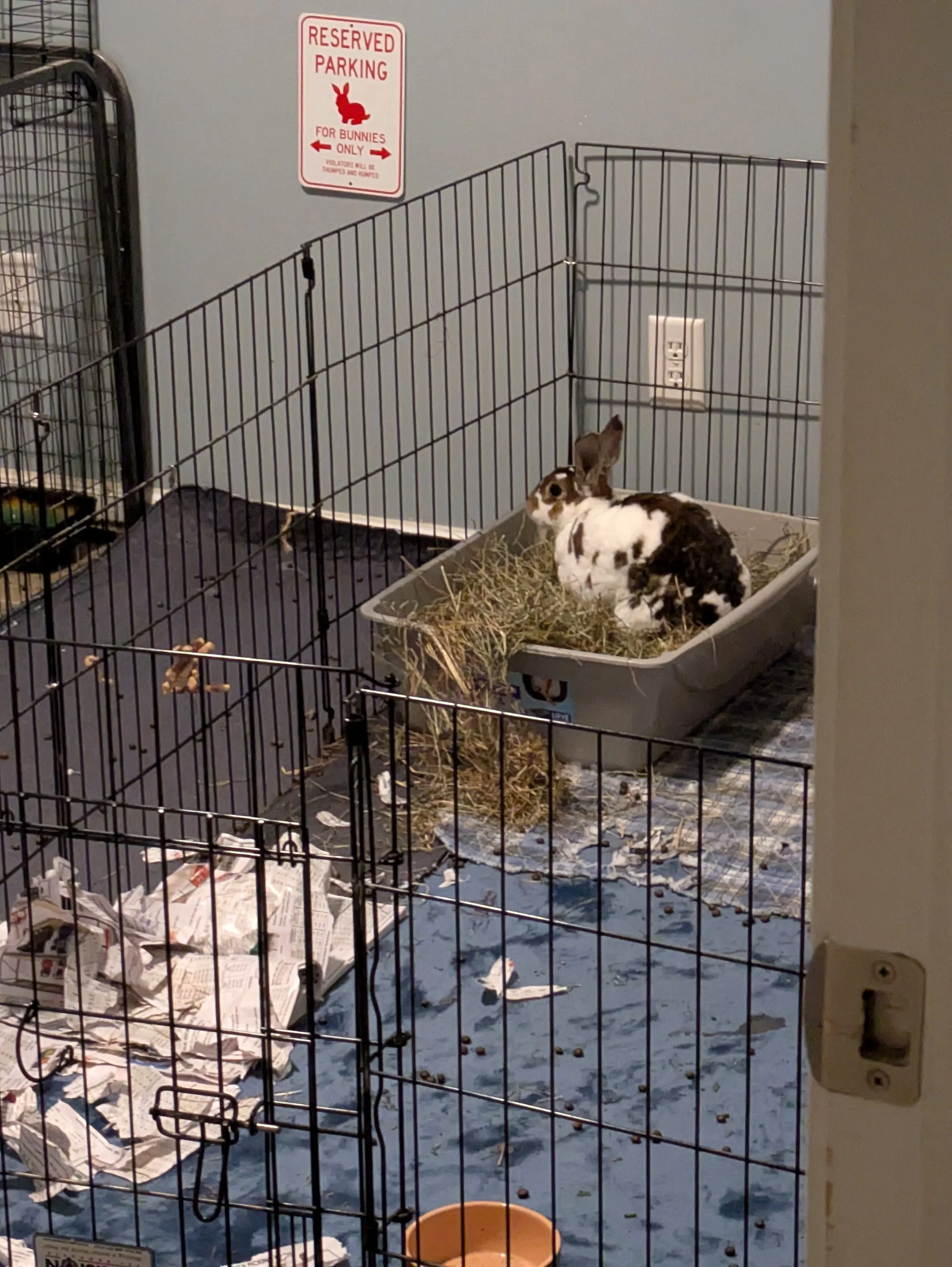Litter, poop, urine, and hay everywhere. After a month of trying different ways to train a rabbit to use the litter box, the owner finally tried replacing the litter box with a different style of box. Nora immediately started using the box and stopped creating a mess everyday. It turns out Nora did not like the shallow low-entry box at all.